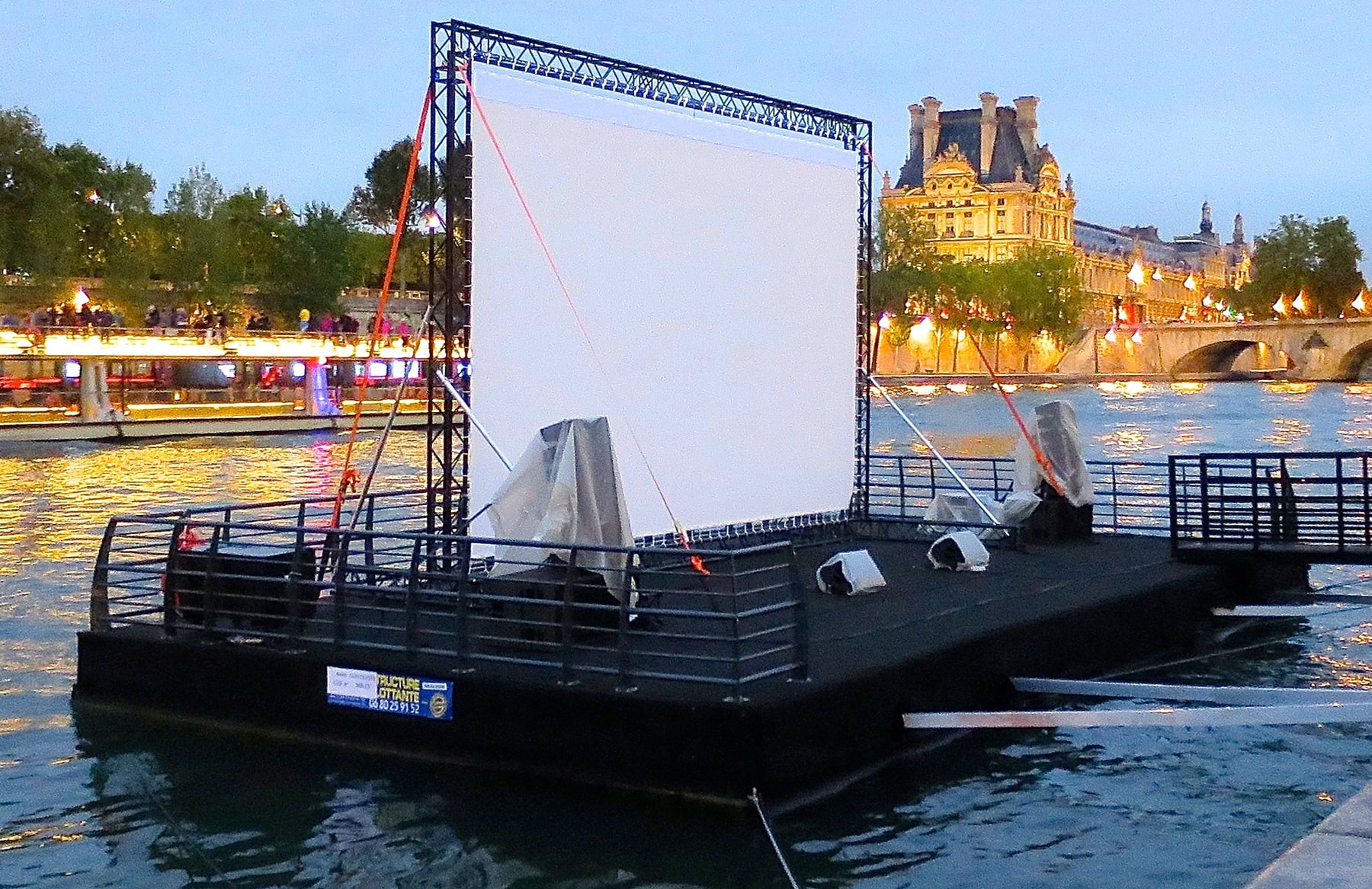 Espace flottant personnalisé pour créer un cinéma original en plein air sur l’eau