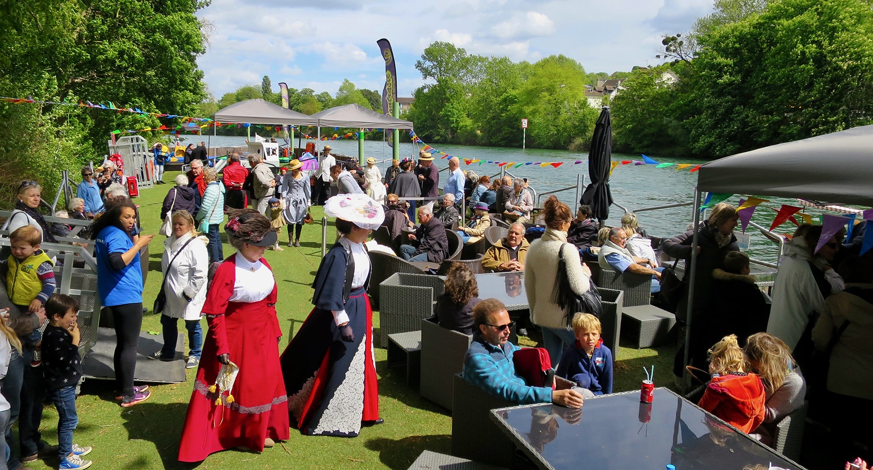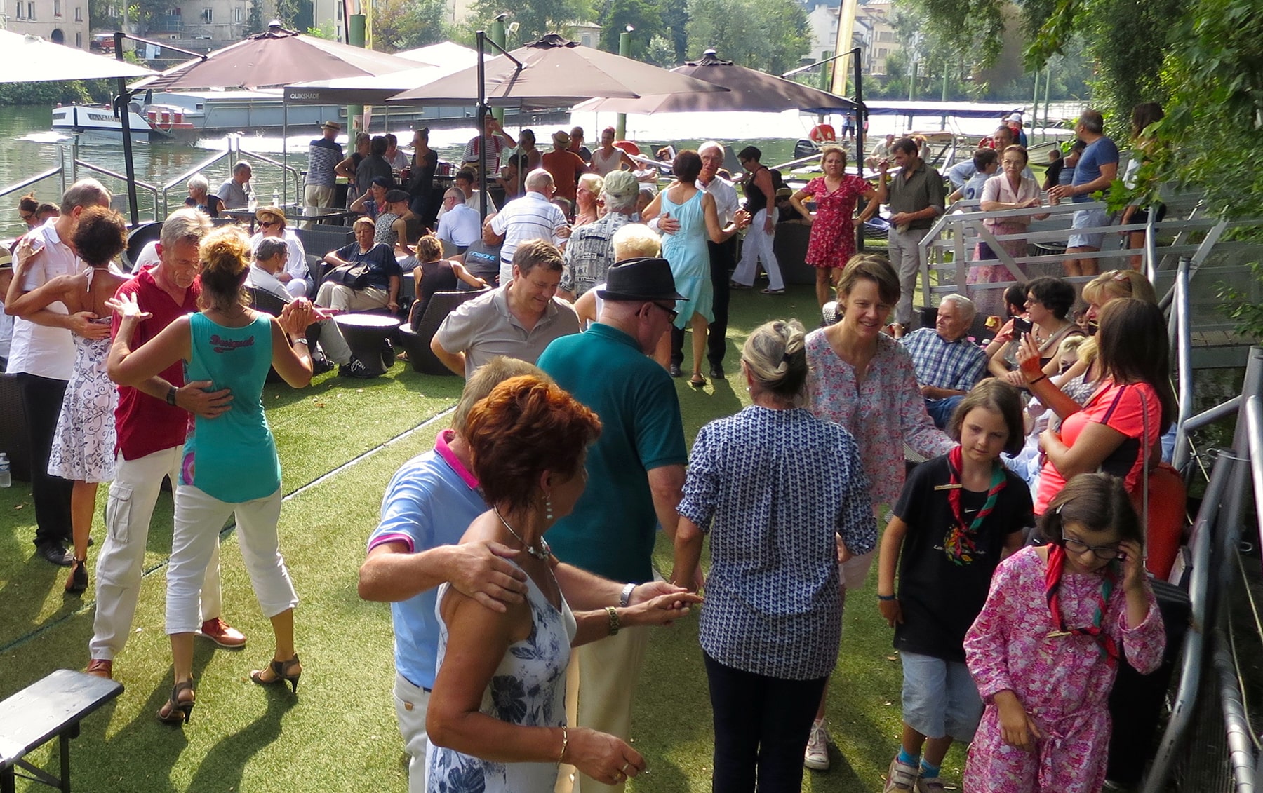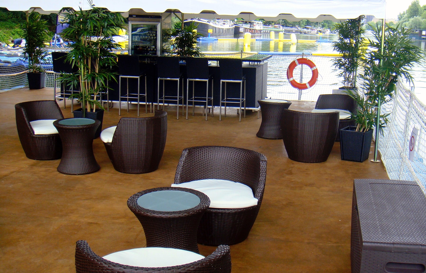 Terrasse flottante sur mesure destinée à accueillir de 40 à 200 personnes pour bar et/ou bal sur l’eau, Afterwork ou réception en tout genre